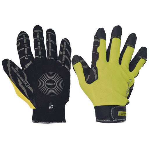 • figyelemfelkeltő színű védőkesztyű • poliészter/spandex kézfej • vízálló és lélegző membrán • mikroszálas szintetikus bőr tenyérrész • 0,8 mm rezgéselnyelő hab, csúszásgátló szilikon mintával az ujjakon • szintetikus bőr körömvédő, poliészter bélés • neoprén mandzsetta tépőzárral • műanyag akasztó méretjelzéssel • EN ISO 10819