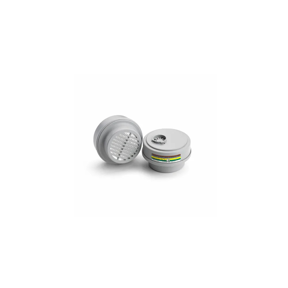 - Bajonett csatlakozású A1B1E1K1P3 kombinált szűrőbetét 65 ° C feletti forráspontú szerves, szervetlen, kéndioxid és egyéb savas gázok és gőzök, valamint ammónia és szerves amin származékok, továbbá mérgező hatású szilárd és folyékony részecskék ellen - Gyors csatlakoztatás, kizárólag az ETNA (6ETN200NSI) és a PANAREA TWIN (6PAN200NSI) álarcokhoz használható - A szűrőbetét háza ABS alapanyagú - Szűrő alapanyaga: aktív szén és nemszőtt polipropilén