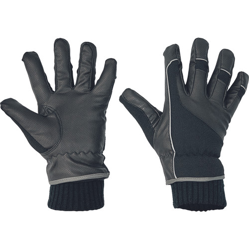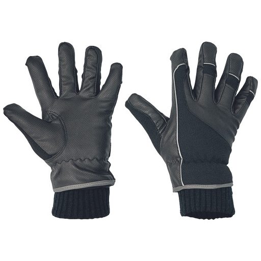 • meleg téli kesztyű vízálló, légáteresztő membránnal • fekete PU-poliészter tenyér és rugalmas, PU erősítésű nylon kézfej • a kötött mandzsetta felett fényvisszavető szegéllyel • fényvisszavető részletek az ujjakon és a kézfejen • 40 g Thinsulate bélés • poliészter és bambusz szálakkal erősített tenyér