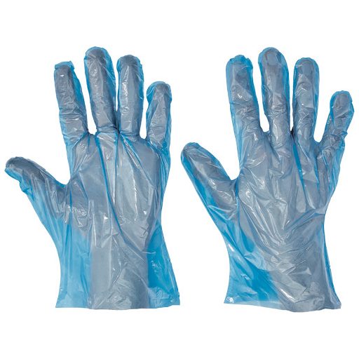 • élelmiszerekkel való rövid idejű érintkezésre alkalmas, 0,018 mm polietilén fóliából készült, egyszerhasználatos kesztyű