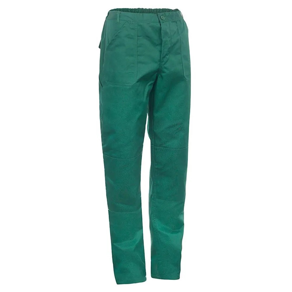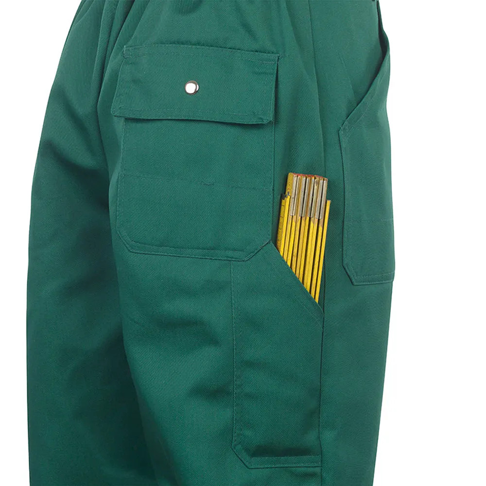 Anyag: 65% PES, 35% pamut, 240 g/m²• 2 rátétes zseb, 1 farzseb, 1 szerszámtartó zseb• Gombbal záródó, gumírozott derék• Dupla térdfolt a jobb kopásállóságért• Gombos slicc• 60 °C-on mosható