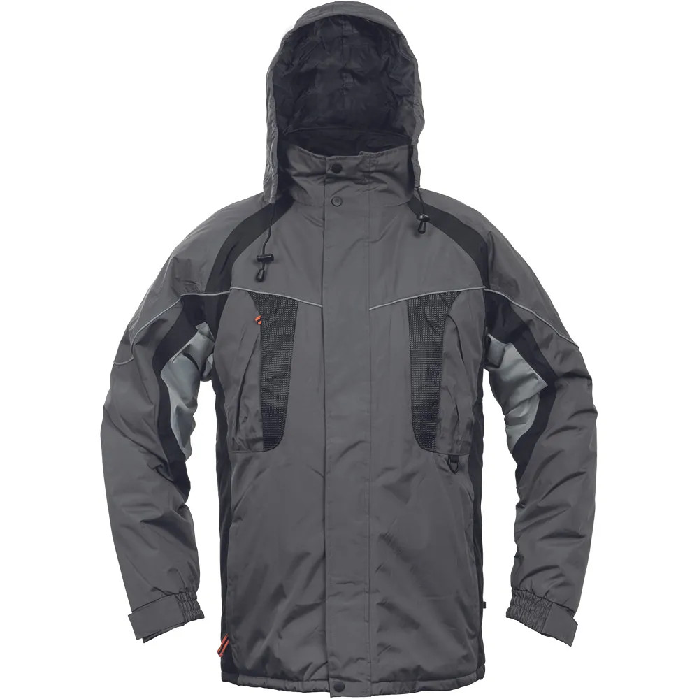 • bélelt, vízálló kabát gallérba hajtott kapucnival
