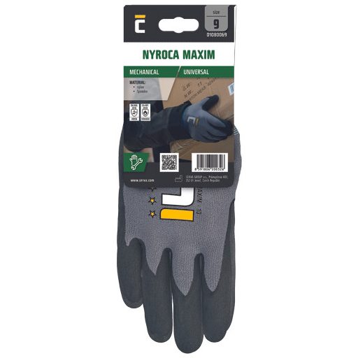 • védőkesztyű nylon/lycra dzsörzé keverékéből, mikroporózus nitril mártással • kiváló folyadékállóság • jól tapad száraz, vizes és olajos környezetben is