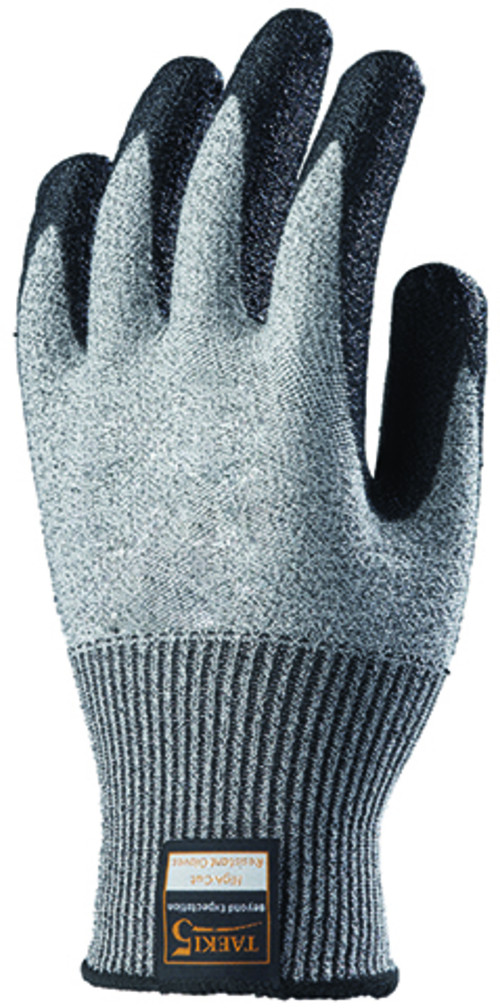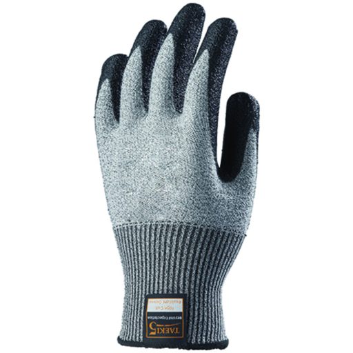 * Taeki 5(R) 13-as kötésű multiszálas védőkesztyű: rendkívüli kopásállóságú és szakítószilárdságú, * 5-ös szinten vágásbiztos, rugalmas alapanyagok (Spandex(R), szintetikus- és üvegszálak)