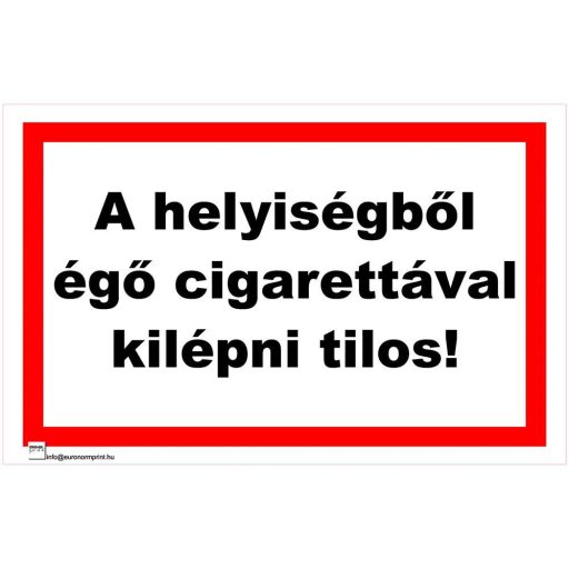 A helyiségből égő cigarettával kilépni tilos! - tábla 160x250