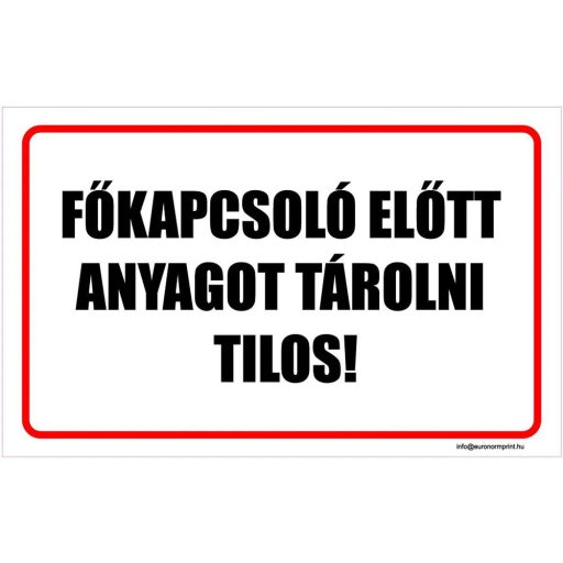 Főkapcsoló előtt anyagot tárolni tilos! - tábla 160x100