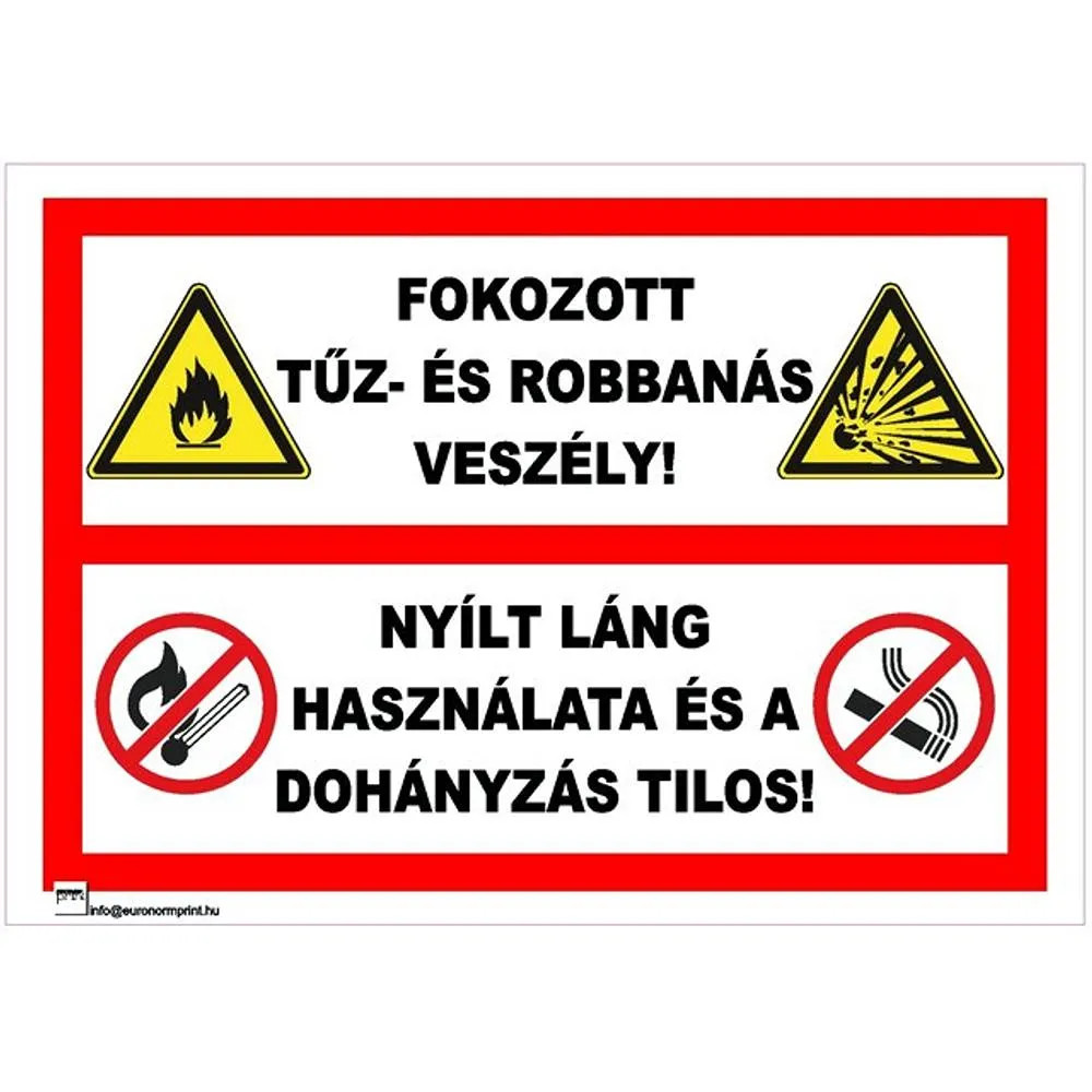 Fokozott tűz- és robbanásveszély! Nyílt láng használata és a dohányzás… - tábla 297x210