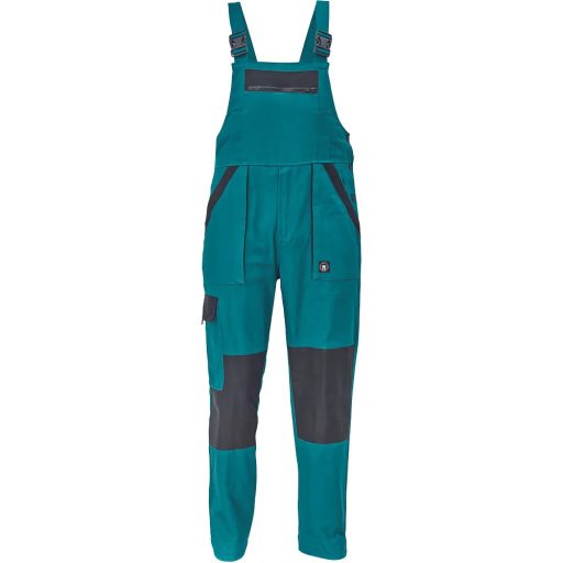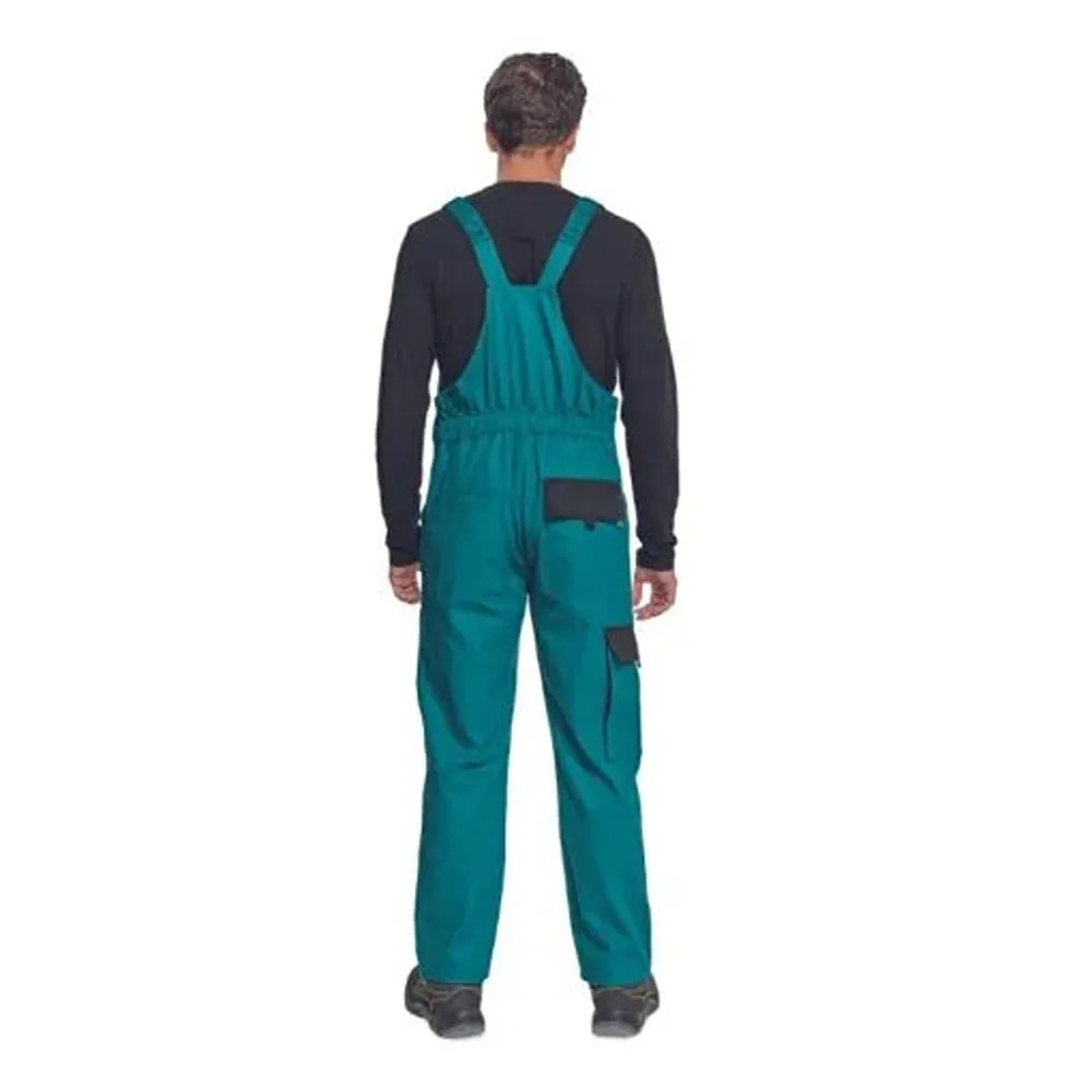 • férfi mellesnadrág rugalmas derékkal, széles pántokkal, műanyag csatokkal; 2 első zseb, 1 oldalzseb, 1 nagy mellzseb, 2 hátsó zseb; megerősített térdrész; a szárak hossza meghosszabbítható; anyag: 100% pamut, anyagvastagság: 260 g/m2