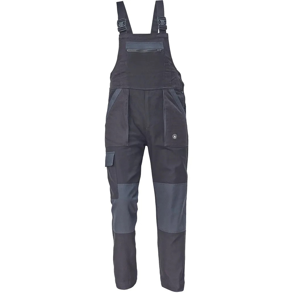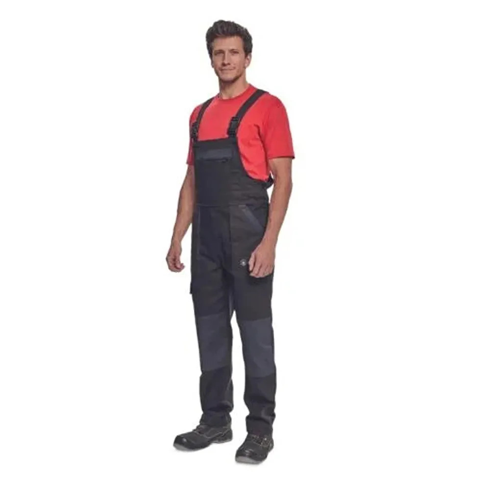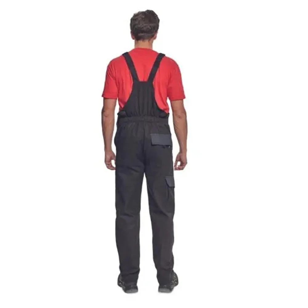 • férfi mellesnadrág rugalmas derékkal, széles pántokkal, műanyag csatokkal; 2 első zseb, 1 oldalzseb, 1 nagy mellzseb, 2 hátsó zseb; megerősített térdrész; a szárak hossza meghosszabbítható; anyag: 100% pamut, anyagvastagság: 260 g/m2