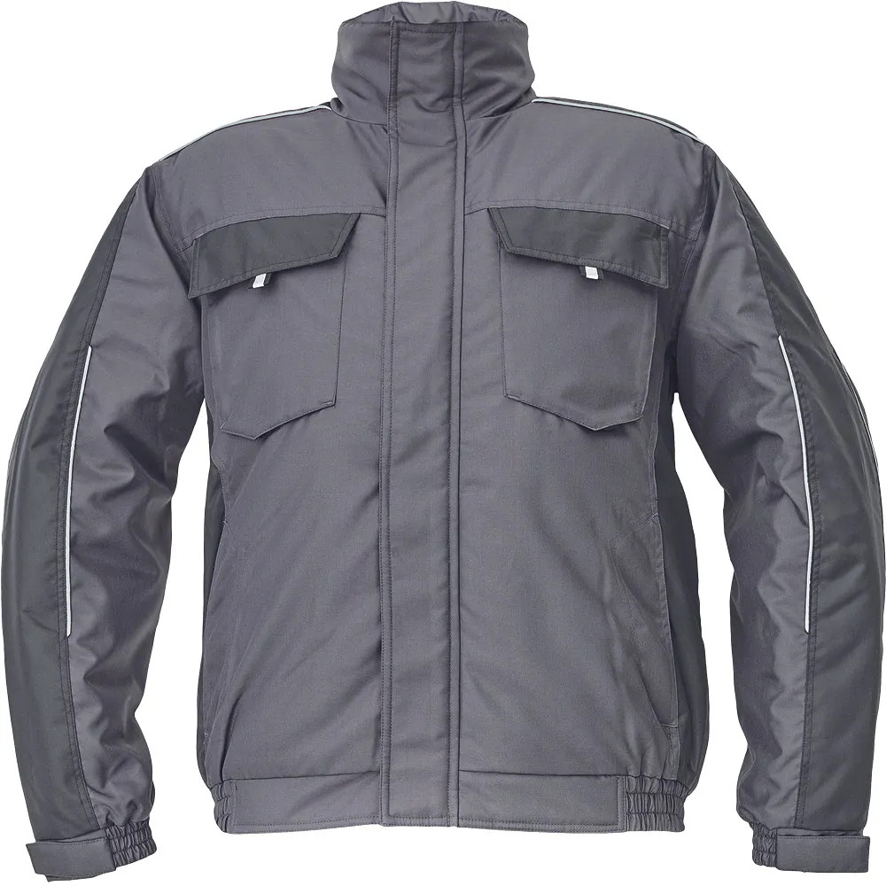 • férfi téli pilóta dzseki; rugalmas derék; tépőzáras takarópánttal fedett cipzár; 2 oldalsó zseb, 2 mellzseb; 1 belső mobiltelefonzseb; rugalmas mandzsetta tépőzárral; fényvisszavető szegés