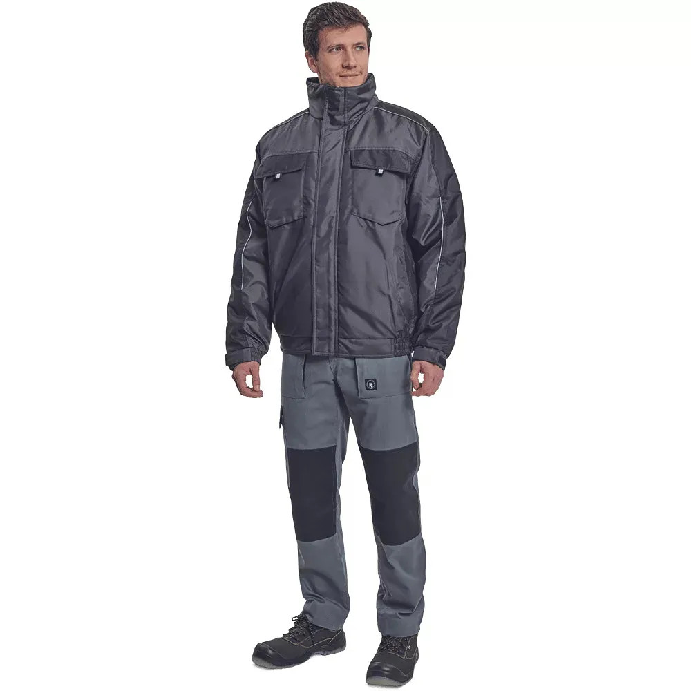• férfi téli pilóta dzseki; rugalmas derék; tépőzáras takarópánttal fedett cipzár; 2 oldalsó zseb, 2 mellzseb; 1 belső mobiltelefonzseb; rugalmas mandzsetta tépőzárral; fényvisszavető szegés