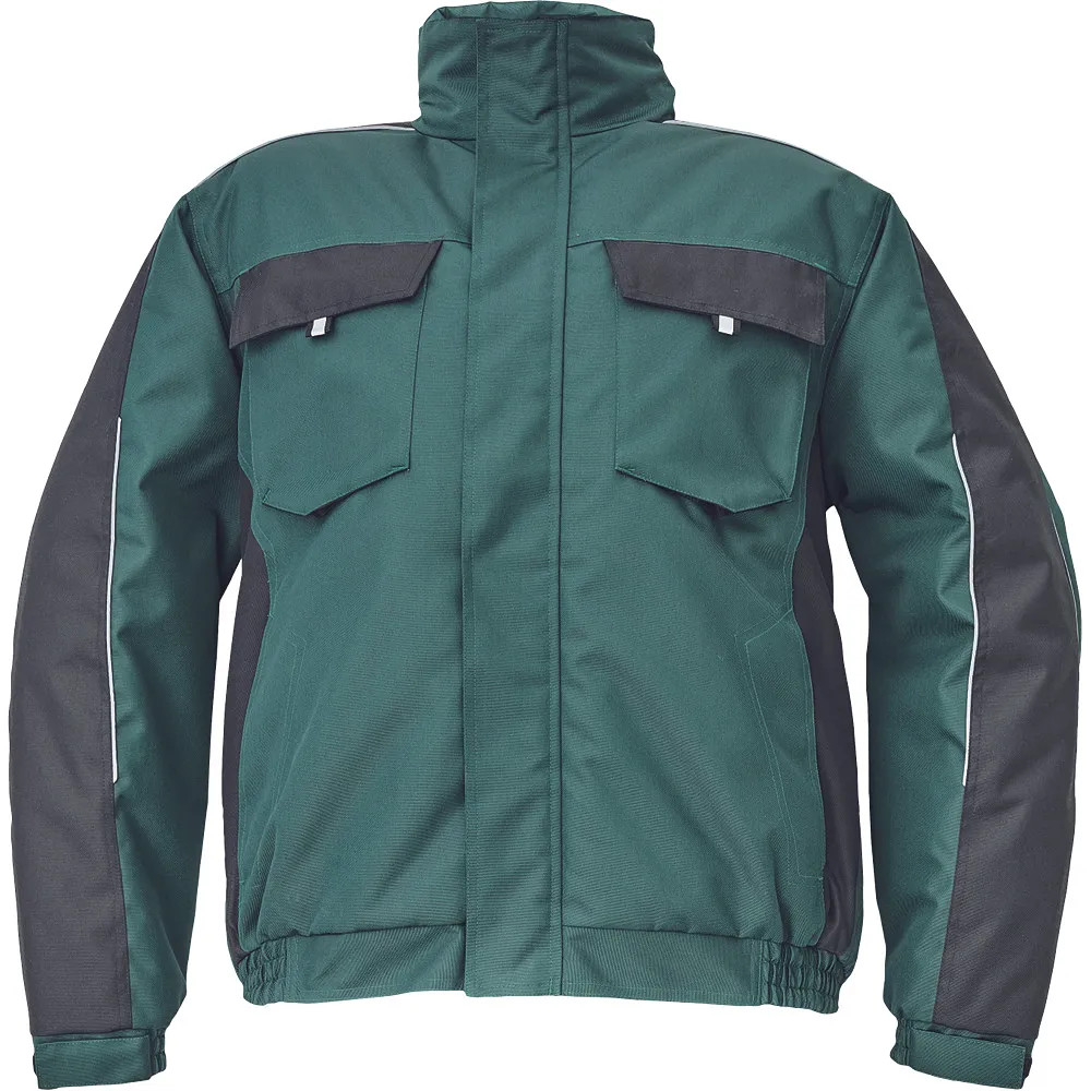 • férfi téli pilóta dzseki; rugalmas derék; tépőzáras takarópánttal fedett cipzár; 2 oldalsó zseb, 2 mellzseb; 1 belső mobiltelefonzseb; rugalmas mandzsetta tépőzárral; fényvisszavető szegés