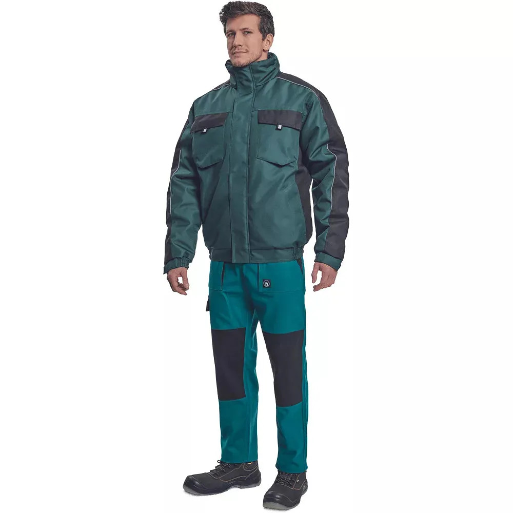 • férfi téli pilóta dzseki; rugalmas derék; tépőzáras takarópánttal fedett cipzár; 2 oldalsó zseb, 2 mellzseb; 1 belső mobiltelefonzseb; rugalmas mandzsetta tépőzárral; fényvisszavető szegés