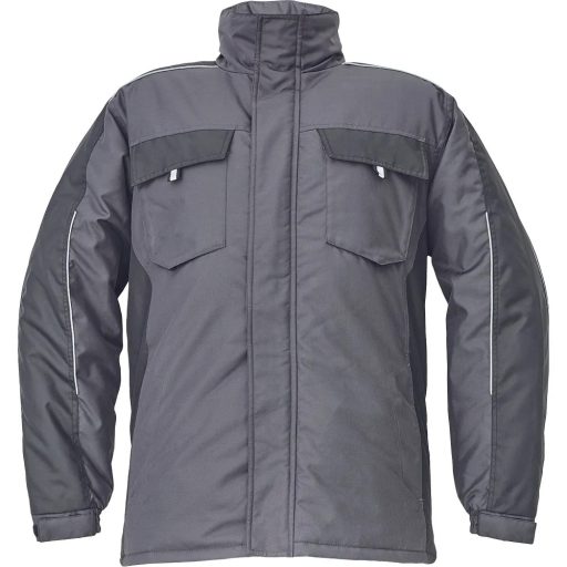 • férfi télikabát; tépőzáras cipzárfedés; gallérba integrált kapucni; 2 oldalzseb, 2 mellzseb; 1 belső mobiltelefon zseb; rugalmas mandzsetta tépőzárral állítható; fényvisszaverő elemek.