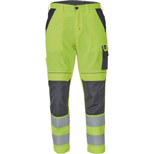 • férfi HI-VIS munkanadrág rugalmas derékkal; 2 első zseb, 1 oldalzseb a bal combon, 2 hátsó zseb; 2 kis hátsó zseb a jobb combon; nyomtatott 7,5 cm-es fényvisszavető csík a lábak alján; fényvisszavető szegés; Oxford 600D megerősített térdrész, térdpárna tartó; a szárak hossza meghosszabbítható