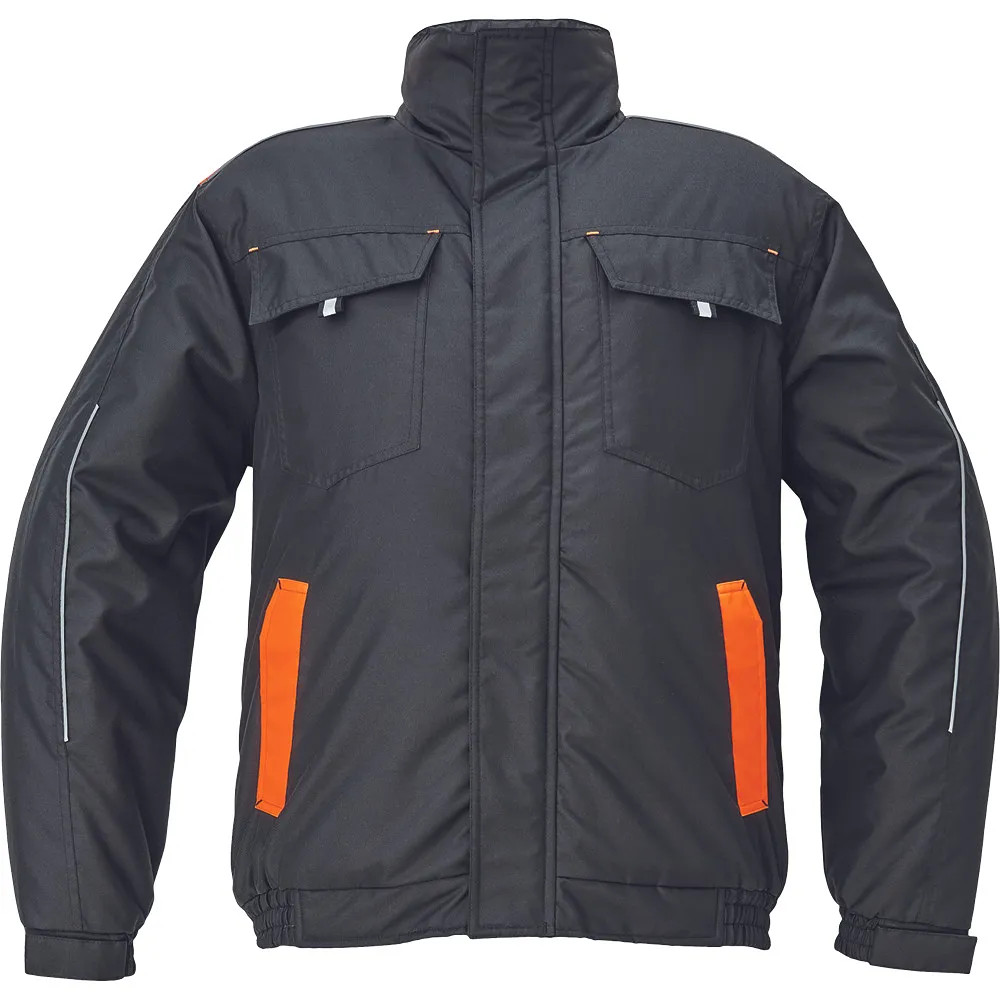 • férfi téli pilóta dzseki; rugalmas derék; tépőzáras takarópánttal fedett cipzár; 2 oldalsó zseb, 2 mellzseb; 1 belső mobiltelefonzseb; rugalmas mandzsetta tépőzárral; fényvisszavető szegés