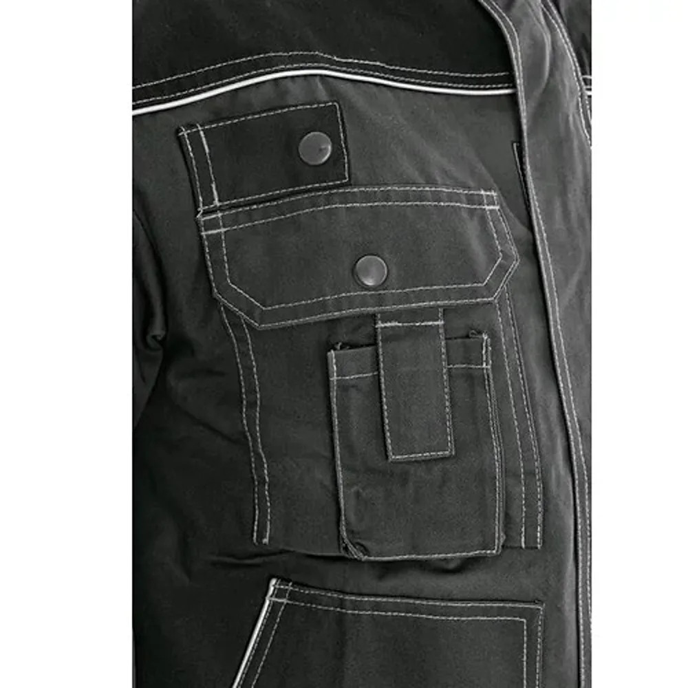 • Férfi munkaruha kabát, fényvisszaverő csíkokkal.