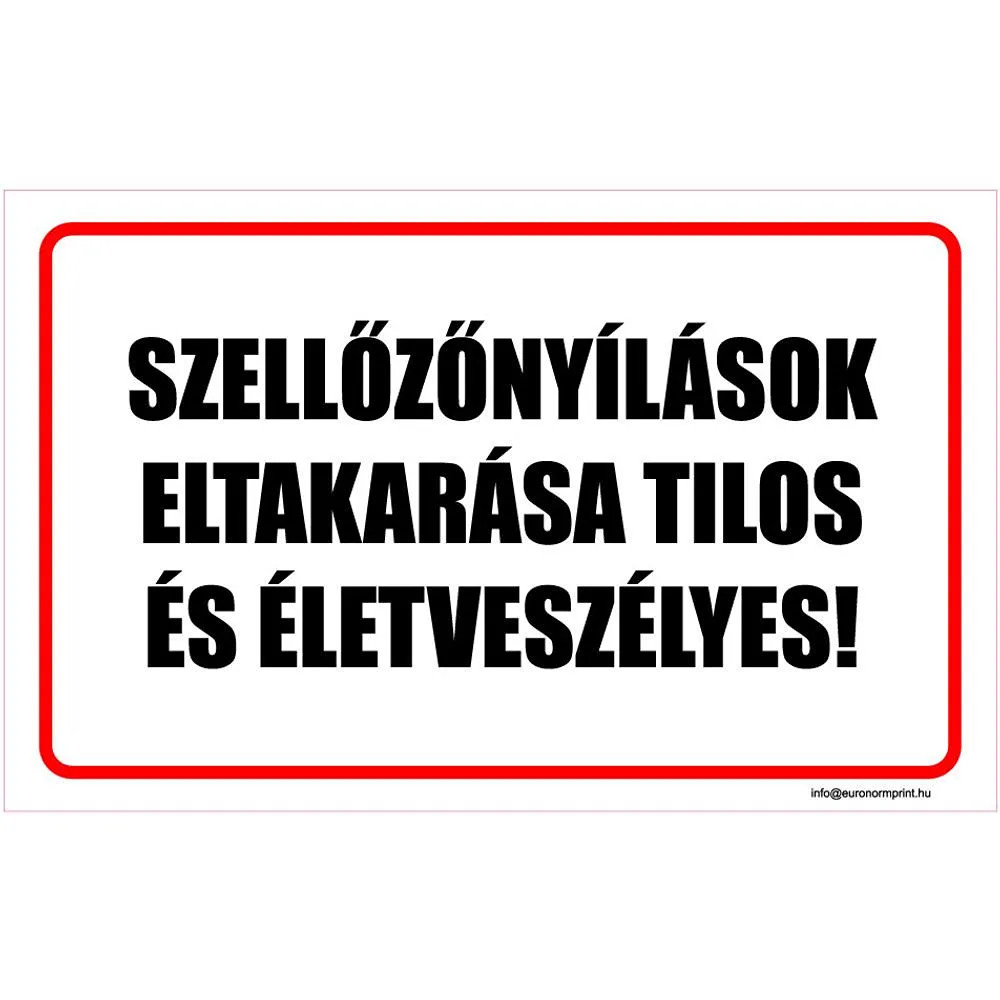 Szellőzőnyílások eltakarása tilos és életveszélyes! - öntapadós 160x100