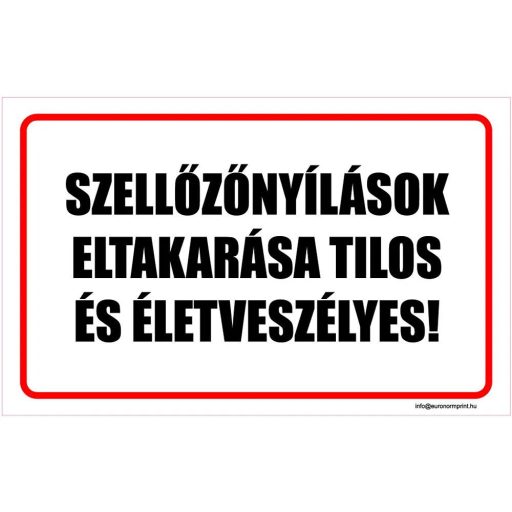 Szellőzőnyílások eltakarása tilos és életveszélyes! - tábla 160x100
